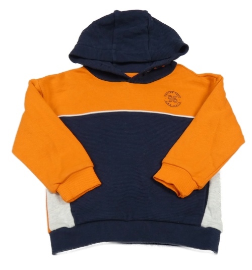 Tmavomodro/oranžovo-světlešedá mikina s číslem a žebrováním a kapucí Nutmeg