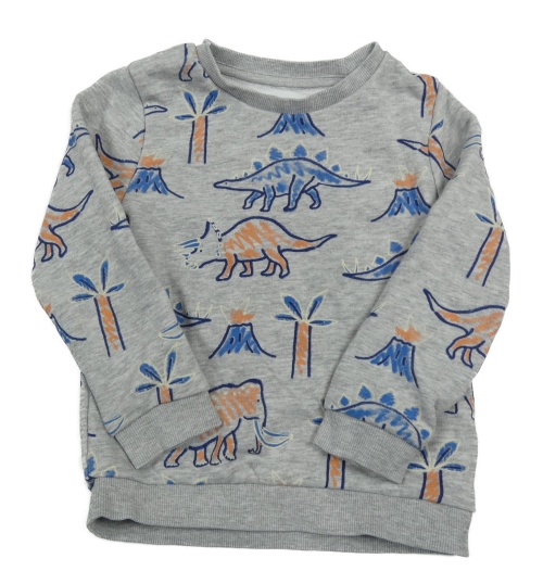 Šedá melírovaná mikina s dinosaury a mamuty a sopkami a palmami M&S