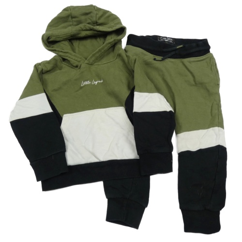 2set - Khaki-černo-bílá mikina s kapucí + tepláky Next