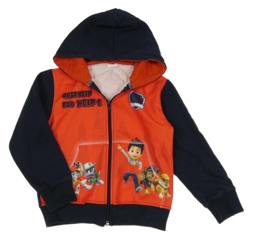 Červeno-tmavomodrá propínací mikina s Tlapkovou patrolou a kapucí