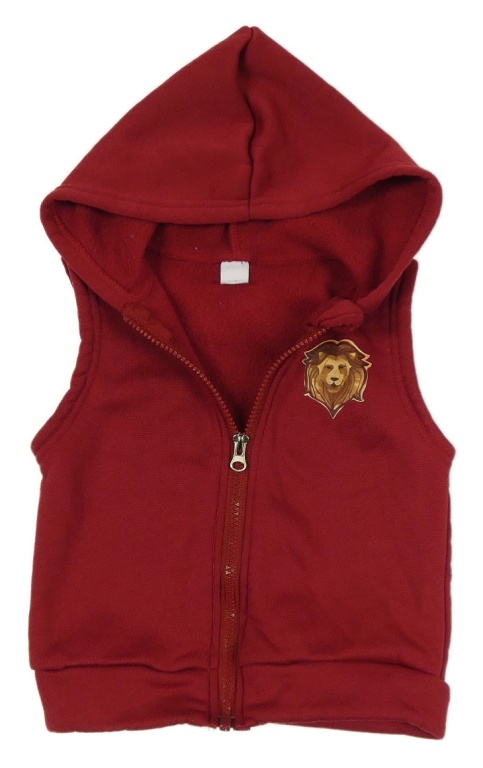 Vínová tepláková vesta s lvem a kapucí