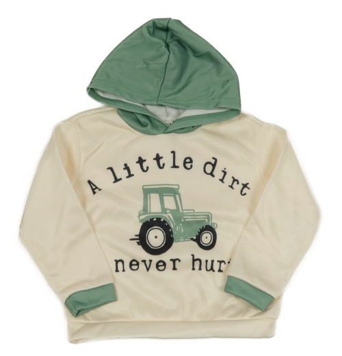 Smetanovo-olivová mikina s traktorem a nápisy a kapucí SHEIN