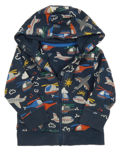 Tmavomodrá propínací mikina s letadly a kapucí Miniclub