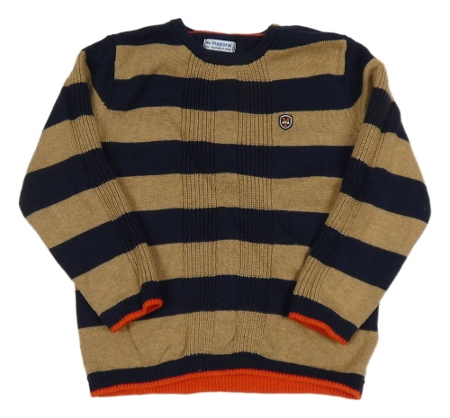 Tmavomodro-hnědo-červený pruhovaný vlněný svetr mayoral