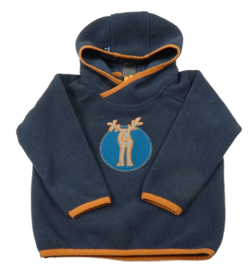 Tmavomodrá fleecová mikina s losem a kapucí