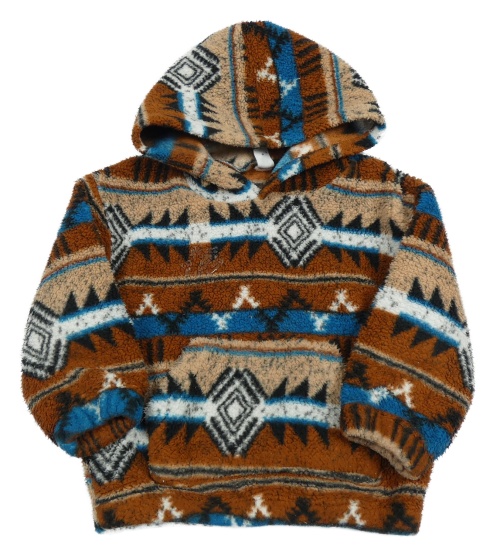 Hnědo-modro-bílá vzorovaná huňatá mikina s kapucí Shein