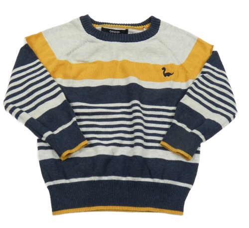 Šedo-modro-hořčicový pruhovaný svetr s dinosaurem George
