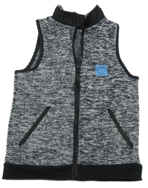Tmavomodrá melírovaná pletená propínací vesta s nášivkou So Cute