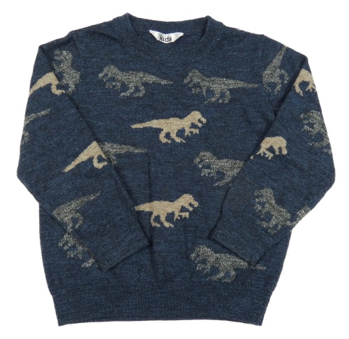 Tmavomodrý melírovaný svetr s dinosaury M&Co