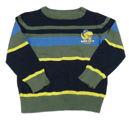 Khaki-tmavomodro-žlutý pruhovaný svetr s dinem