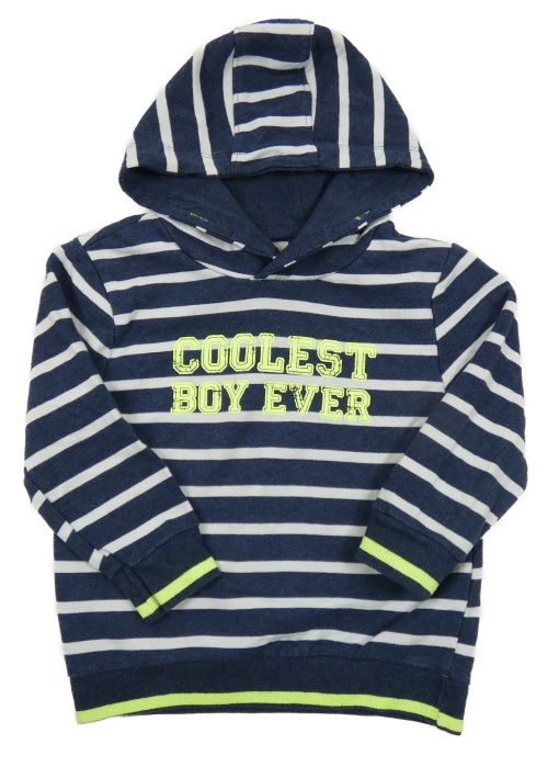 Tmavomodro-bílá pruhovaná mikina s nápisem a kapucí Topolino