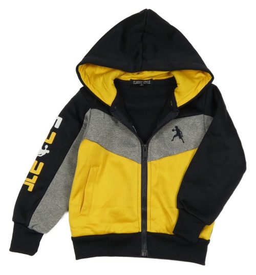 Černo-žluto-šedá sportovní propínací mikina s kapucí