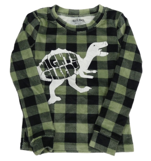 Khaki-černé kostkované sametové pyžamové triko s dinem