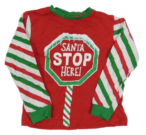Červeno-zeleno-bílé pyžamové triko se značkou a pruhovanými rukávy