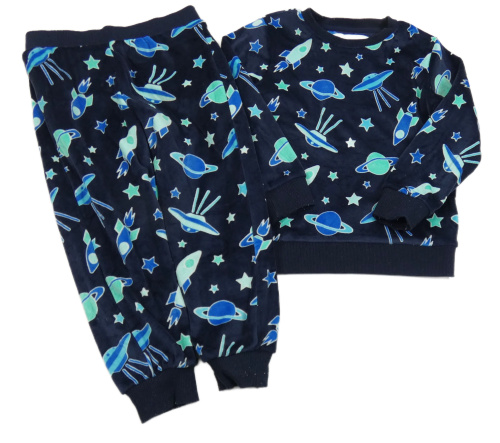 Tmavomodré plyšové pyžamo s vesmírem F&F