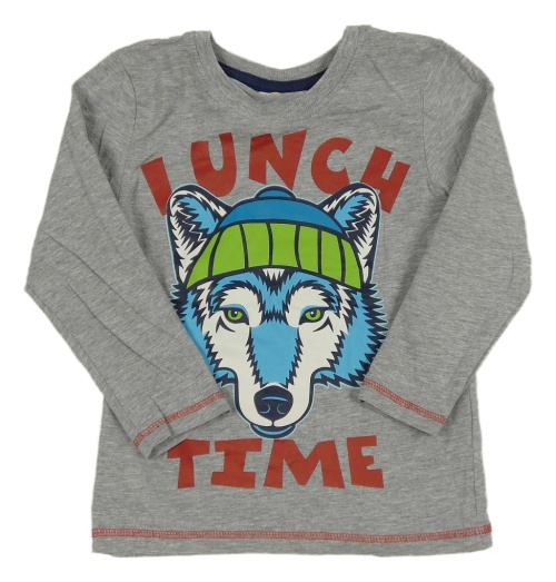 Šedé melírované pyžamové triko s vlkem a nápisy Kids