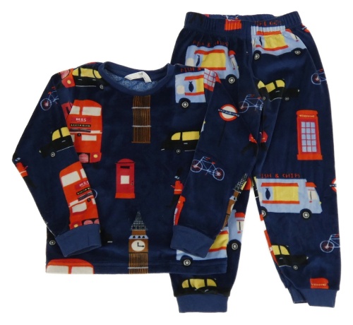Tmavomodré plyšové pyžamo s motivy Londýna M&S