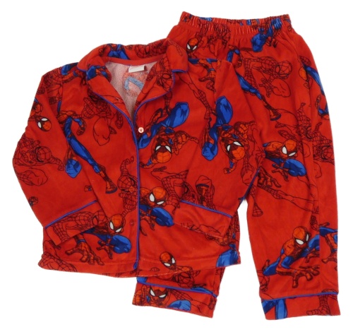 Červeno-tmavomodré plyšové pyžamo se Spider-manem