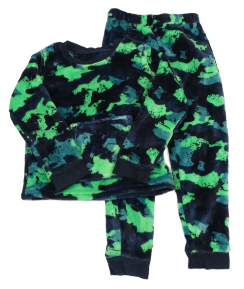 Tmavomodro-neonově zelené vzorované chlupaté pyžamo