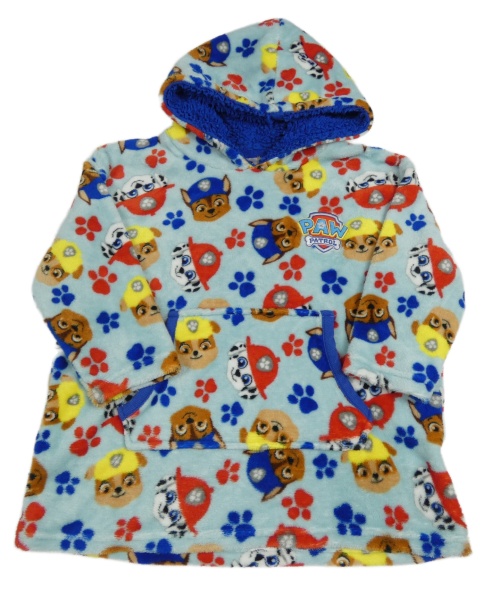Světlemodrá plyšová oversize mikina s PAW PATROL a kapsou a kapucí nickelodeon