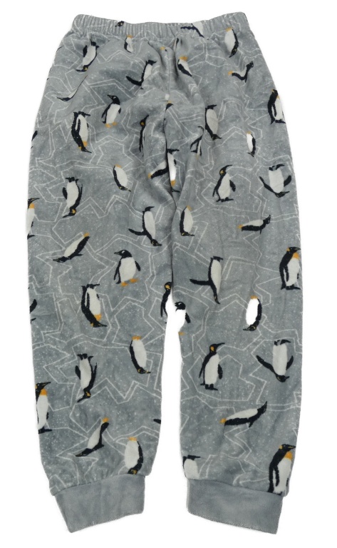 Šedé plyšové kalhoty s tučňáky