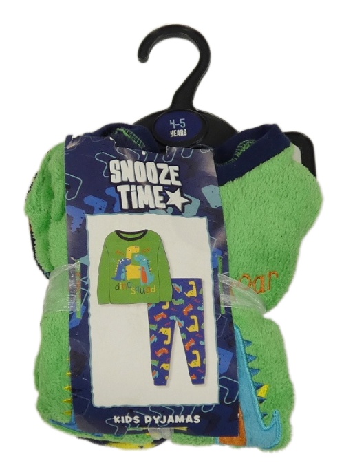 Nové - Zeleno-tmavomodré chlupaté pyžamo s dinosaury