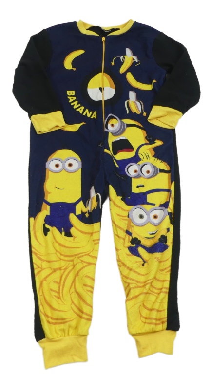 Černo-tmavomodro-žlutý fleecový overal s Mimoni