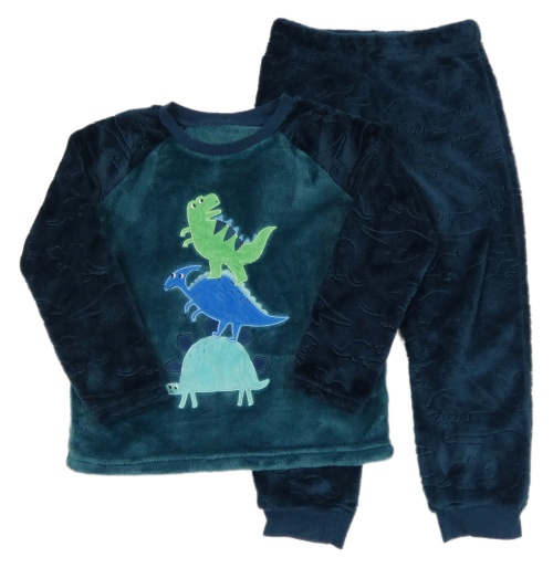 Smaragdovo-tmavomodré chlupaté pyžamo s dinosaury Nutmeg