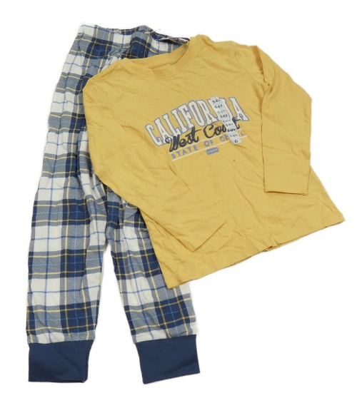 Nové - Žluto-modro-bílé pyžamo s nápisem a kostkovanými kalhoty Dunnes Stores