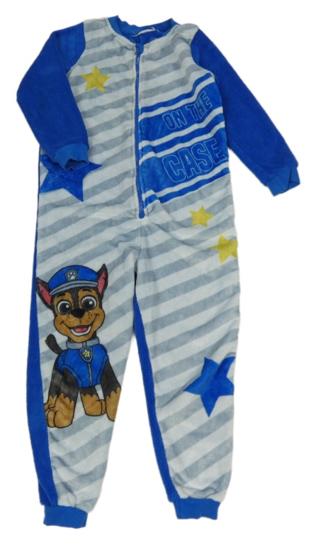 Šedo-modrý pruhovaný plyšový overal s Tlapkovou patrolou