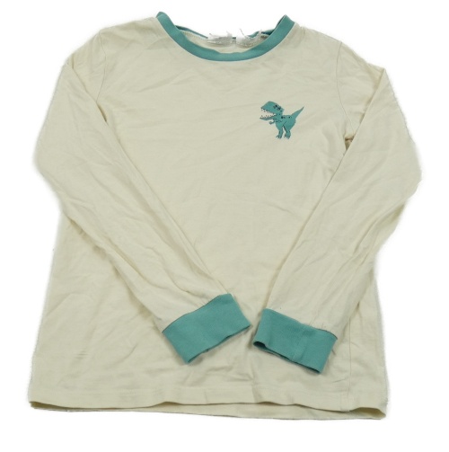 Smetanové pyžamové triko s dinosaurem a zeleným lemem