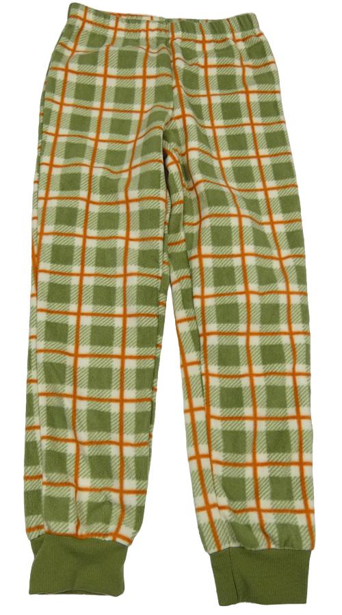 Khaki-smetanovo-cihlové kostkované fleecové pyžamové kalhoty