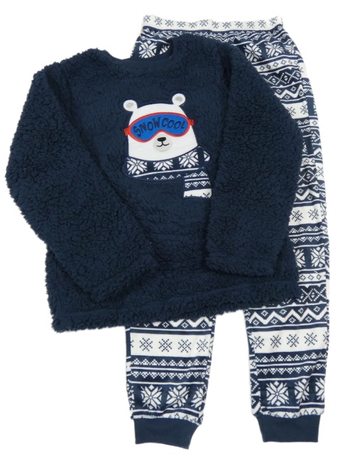 Tmavomodro-vzorované chlupato/plyšové pyžamo s medvědem Primark