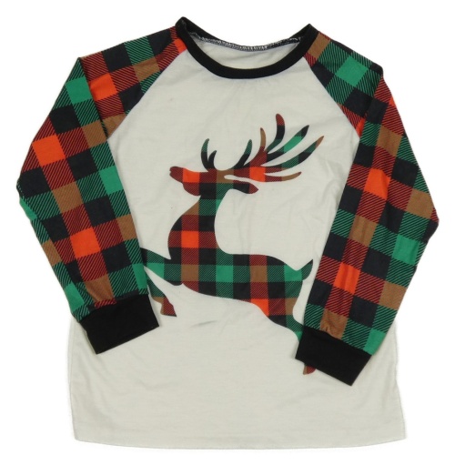 Bílo-černo-zelené kostkované pyžamové triko se sobem