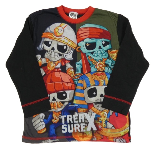 Černo-khaki-červené pyžamové triko s lebkami - TREASURE