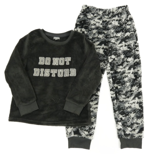 Tmavošedé vzorované plyšové pyžamo s nápisem