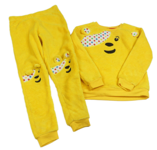 Žluté chlupaté šaty s medvídkem Pudsey George