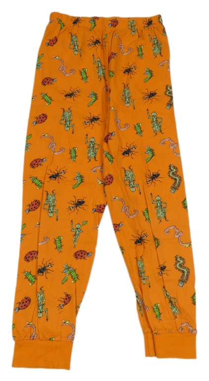 Oranžové pyžamové kalhoty s brouky a pavouky a žížalami Tu