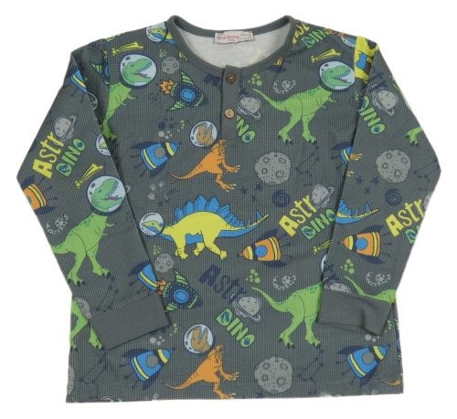 Tmavošedé žebrované pyžamové triko s dinosaury a planetami a raketami LUSANA