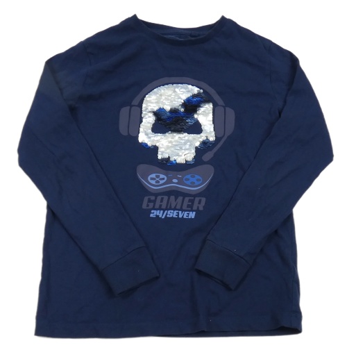 Tmavomodré pyžamové triko s lebkou z flitrů Next
