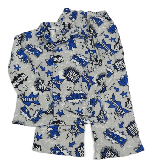 Šedo-modré fleecové pyžamo s nápisy Peacocks