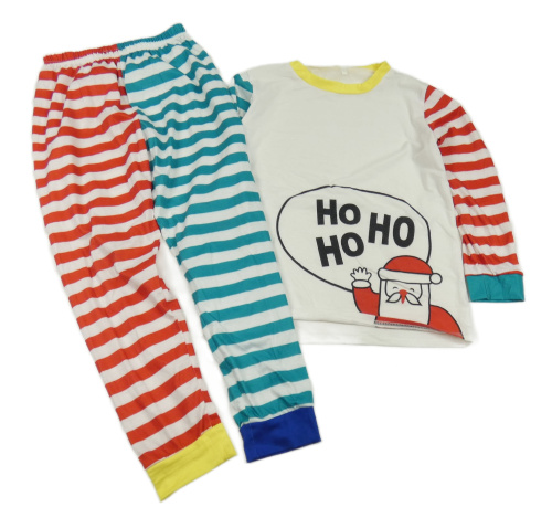 Bílo-červeno-zelené pyžamo se Santou a pruhy