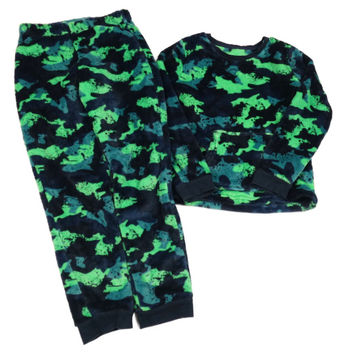 Tmavomodro-neonově zelené army chlupaté pyžamo Nutmeg