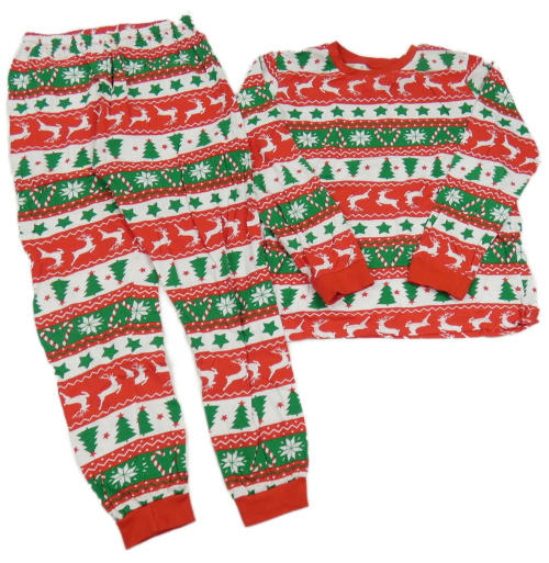 Červeno-bílo-zelené pruhované vánoční pyžamo s nápisy s obrázky