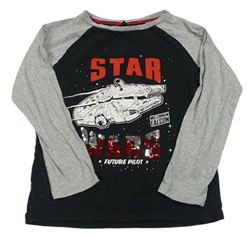 Černo-šedé melírované pyžamové triko s flotilou - Star Wars a překlápěcími flitry Tu