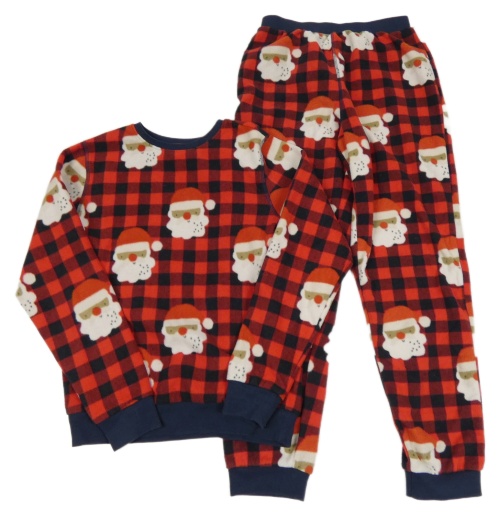 Tmavomdoro-červené kostkované fleecové pyžamo se Santou Next