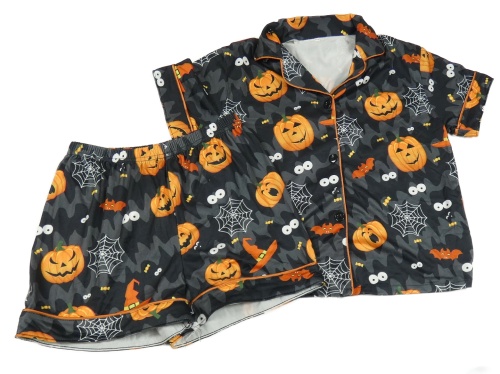 Černo-antracitové vzorované pyžamo s dýněmi Shein