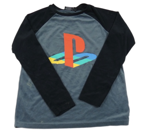 Tmavošedo-černé plyšové pyžamové triko Playstation