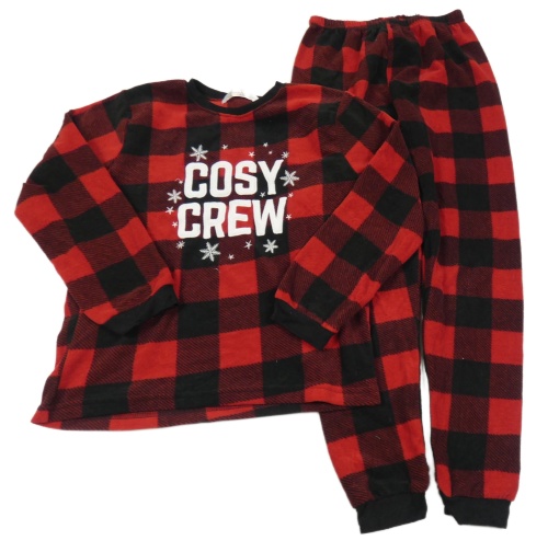 Červeno-černé kostkované fleecové pyžamo s nápisem