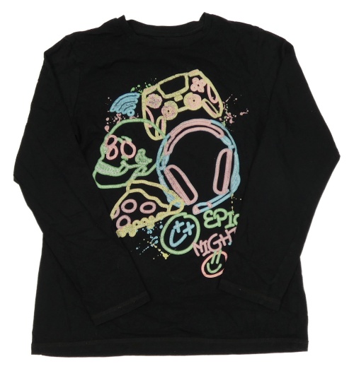 Černé pyžamové triko s lebkou a ovladačem George